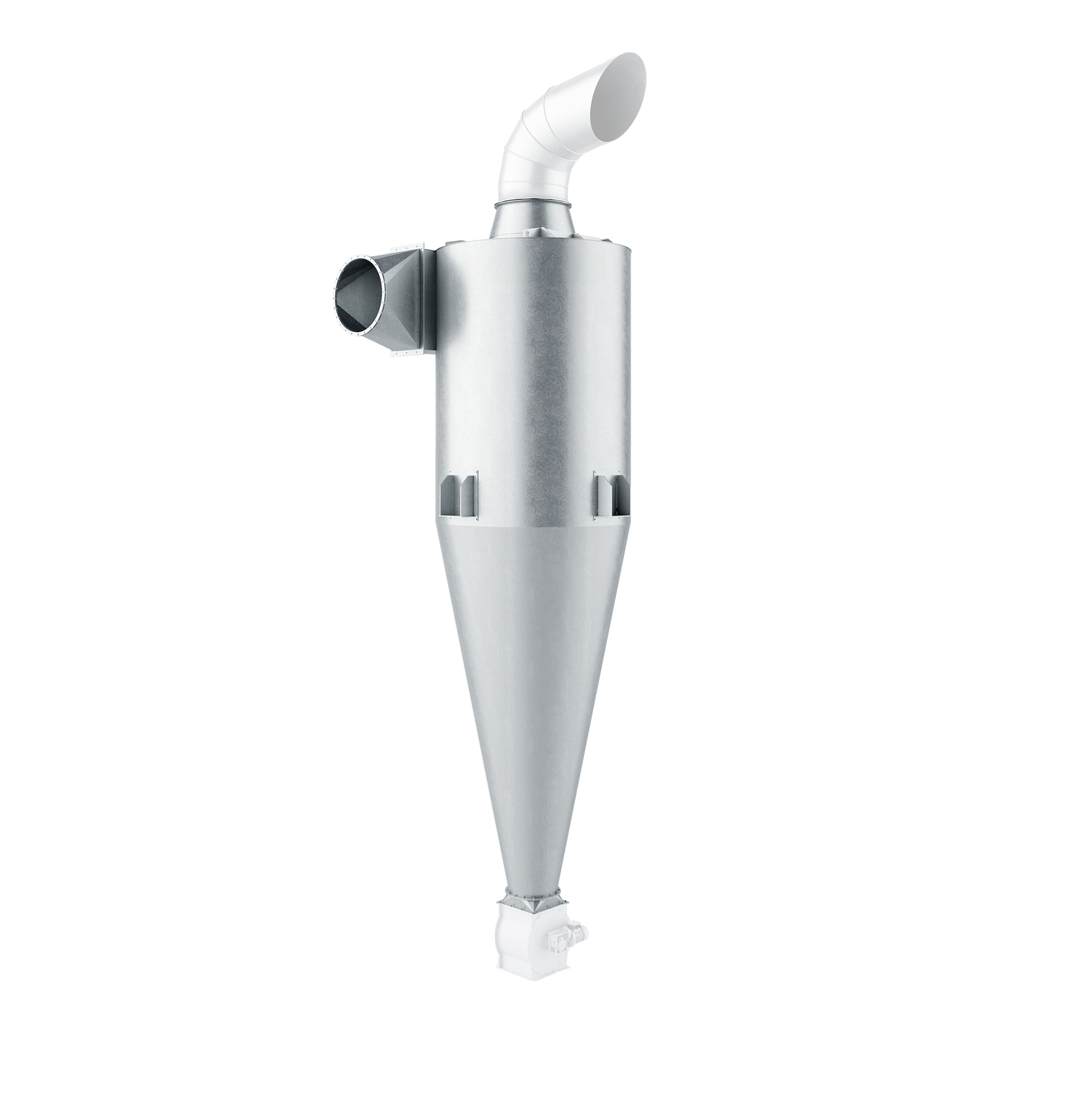 Cyclone filters (Pre-Filtration) use centrifugal force to separate larger particles like ash, soot, and dust before allowing gases into finer filtration systems.
